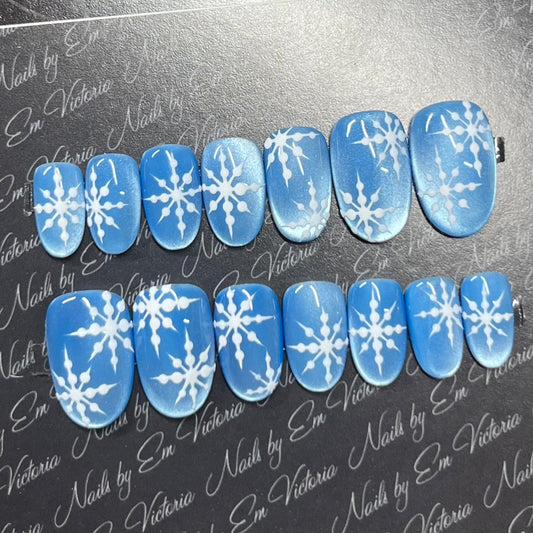 Blue Velvet Cat Eye Textured Snowflakes Short Round