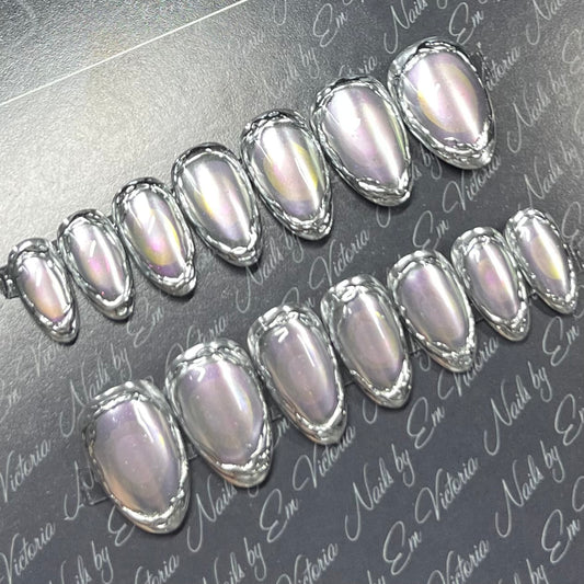 Silver Holographic Iridescent Chrome in Short Almond
