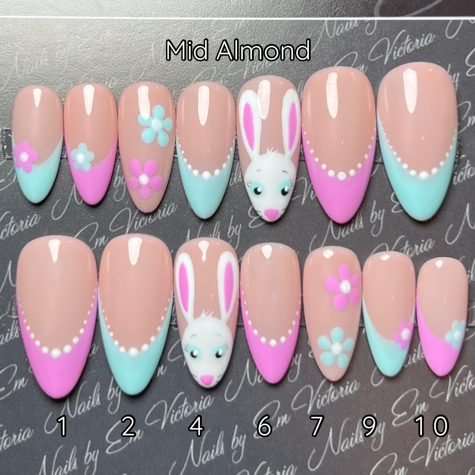 Sizes are on the 3rd listing image, for additional sizes please add them in the ‘extra sizes’ field below. Up to 4 nails or 2 pairs extra FREE!