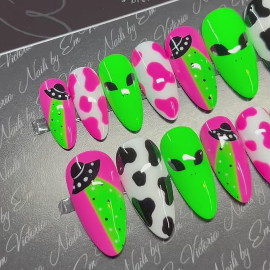 Pink Green Alien Cow Print Mid Almond