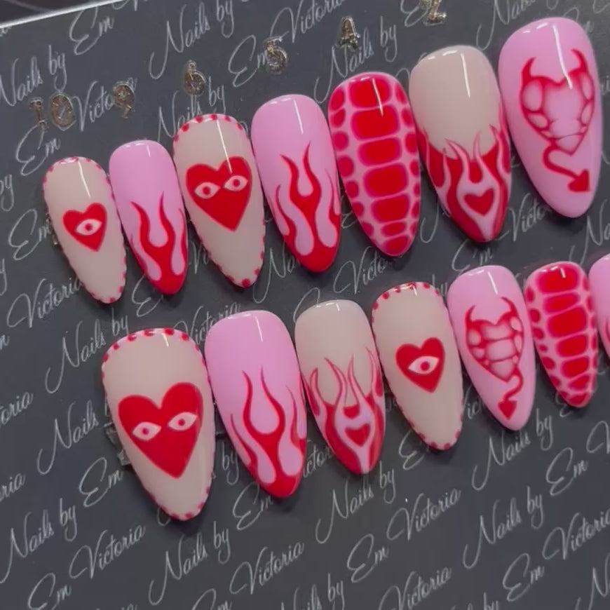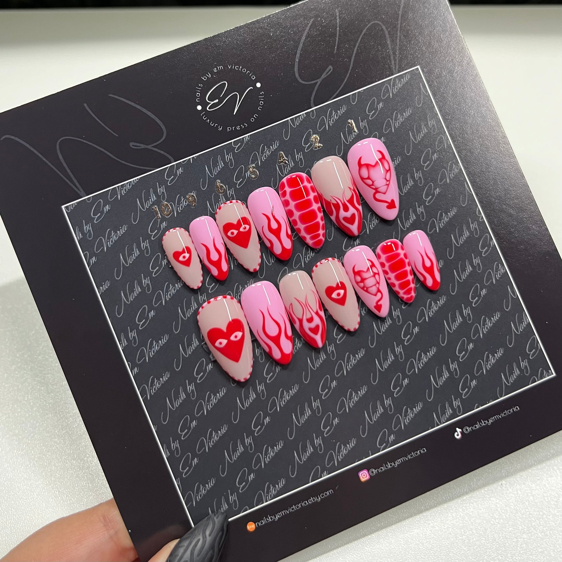 Sizes are on the 3rd listing image, for additional sizes please add them in the ‘extra sizes’ field below. Up to 4 nails or 2 pairs extra FREE!